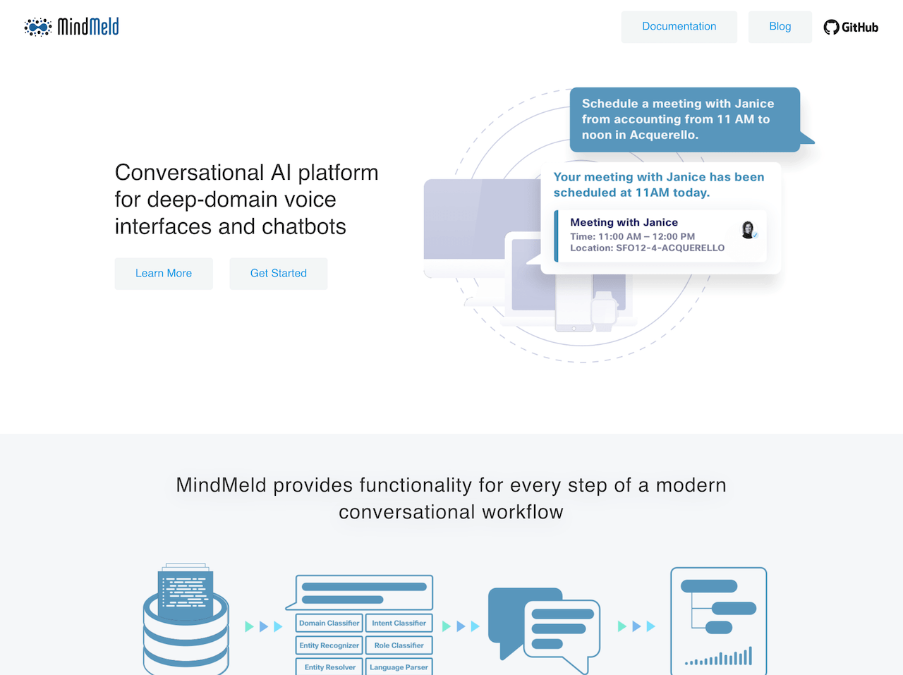 MindMeld is an AI-powered conversational platform that enables developers to create natural language interfaces for their apps and devices. The AI technology used by MindMeld enables it to understand the intent behind user requests and respond in a conversational manner. Pros of using MindMeld include its ease of use, its ability to handle complex user requests, and its customizable user interface. Cons of using MindMeld include the fact that it may require some technical expertise to set up, and that it may not be as accurate as some other conversational platforms.