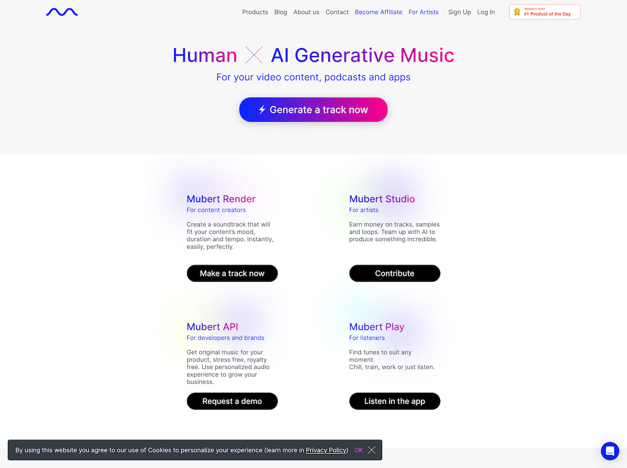 We began by developing a platform that connected musicians and listeners. Through building the Mubert mobile app, having it featured as “App of the Day” in more than 170 countries, and developing unique B2B solutions, we are constantly striving to improve our ecosystem.