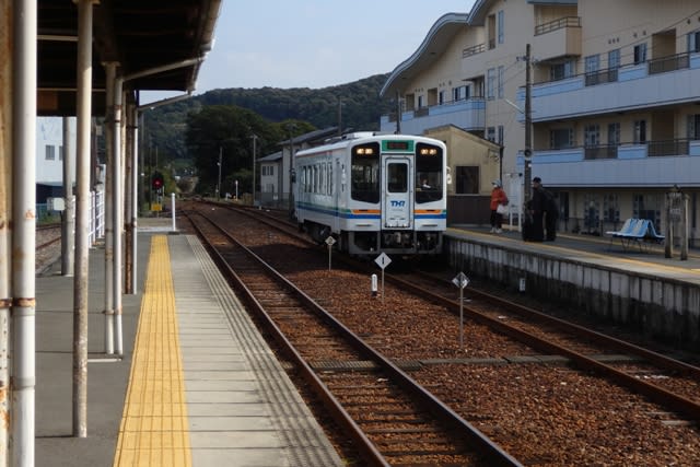 ちょうど、上りと下りが同時にホームに入ってきました。
