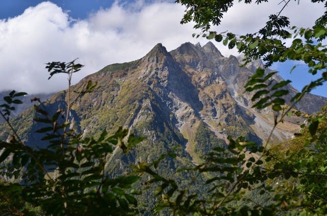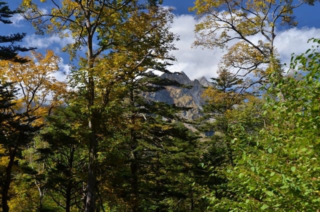 木々の間から明神岳が見えるポイントが幾つかありました。 ↑