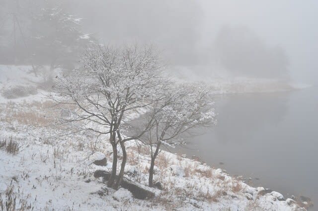 霧の中には、雪の桜が咲いていました。 ↑