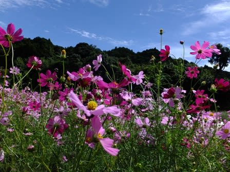 脇道に逸れて歩いて見ると、コスモス畑がありました。