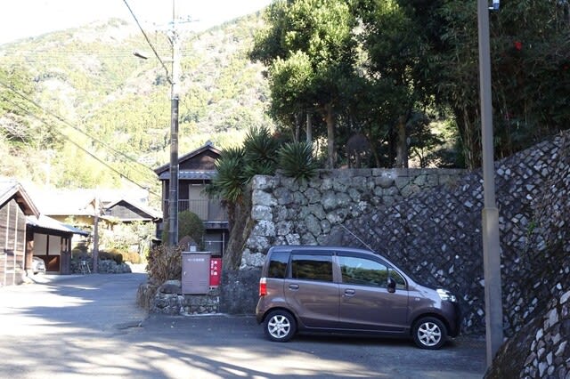 沢沿いに連なる、りっぱな石垣が印象的な集落です。
