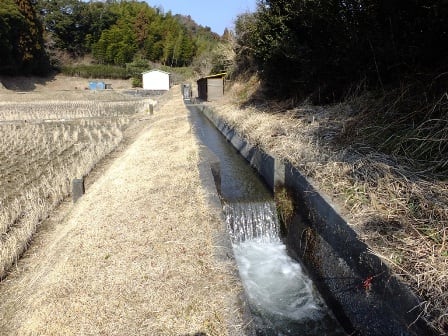 農業用水の水路には、けっこうな勢いで水が流れていました。