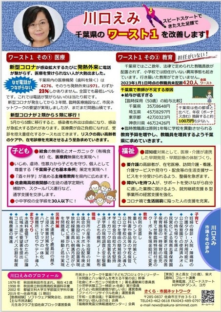 2023-02-16 県議選 4月9日 川口えみが挑戦、市議選は 4月23日 伊藤とし子、五十嵐智美、松島こずえ 3人で挑戦 政治 いよいよ統一地方選挙が迫ってきました。 まずは4月9日 県議会選挙に川口えみが挑戦します。 伊藤とし子からバトンを渡し、県議会で発言できるチャンスを守ります。 川口えみの動画ができました。 是非、ご覧ください。 https://www.youtube.com/watch?v=nPu8P3GdXNM 百聞は一見にしかず。 動画をアップできるとは、便利ですねえ。