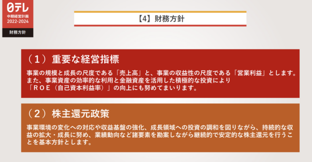 日本テレビは以前の中期経営計画の財務方針ではROEへの言及はありませんでした。