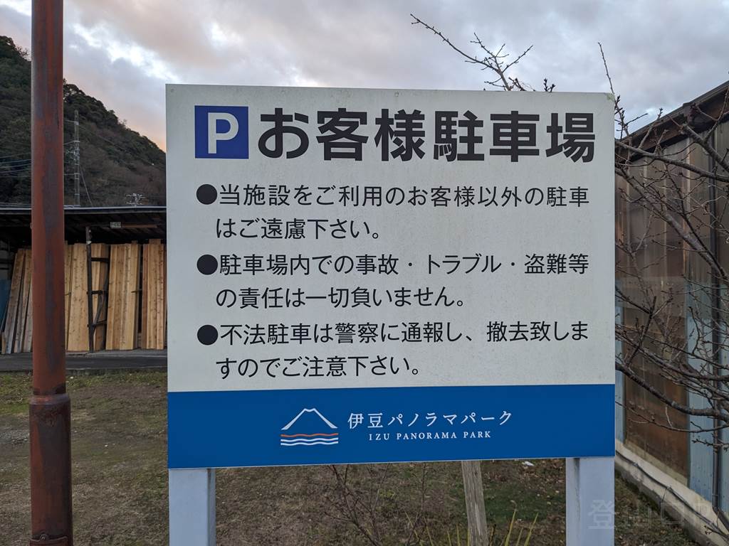 伊豆中央道の伊豆長岡インターを下りて「伊豆長岡IC」交差点を東へ、その後すぐ「長岡IC東」交差点を右折すると駐車場の入口です。ロープウェイの麓駅の駐車場で、ロープウェイ利用すれば葛城山の山頂エリアまで7分で行くことができるため、そのまま葛城山を散策できます。なお、山頂には飲食店の他に足湯などがあります。
