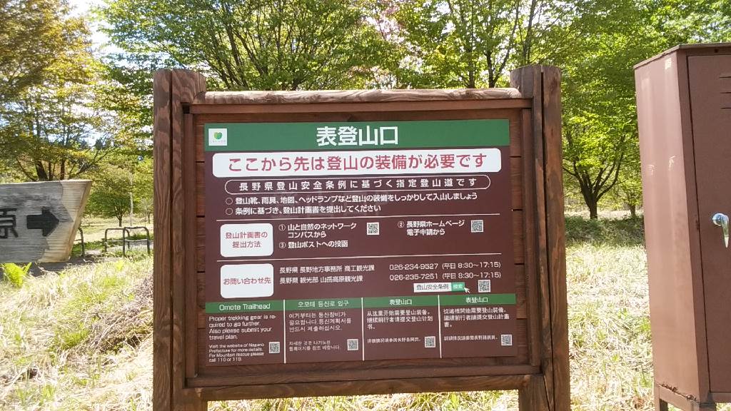 上信越自動車道の信濃町インターから車で15分(8㎞)です。訪れる人は少なく、ややさびしい場所ではありますが、休憩所および看板も整備された立派な登山口です。しかし、駐車場は整備されておらず、休憩所横のスペースに車を停めることとなります。