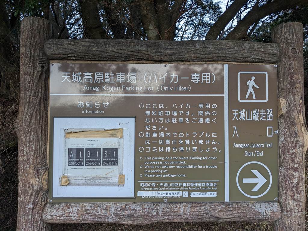 伊豆スカイラインの天城高原インターを出たら右方向へ、天城高原ゴルフコース東急リゾーツ&ステイを目指します。道なりで8㎞ほど進むと、ゴルフ場の手前にハイカー専用の駐車場が整備されています。天城山の縦走路のスタート地点として利用可能で、シャクナゲコースまたは万二郎岳、万三郎岳を経由して西の天城峠までつながっています。大変広い駐車場ですが、シーズン中には混雑します。