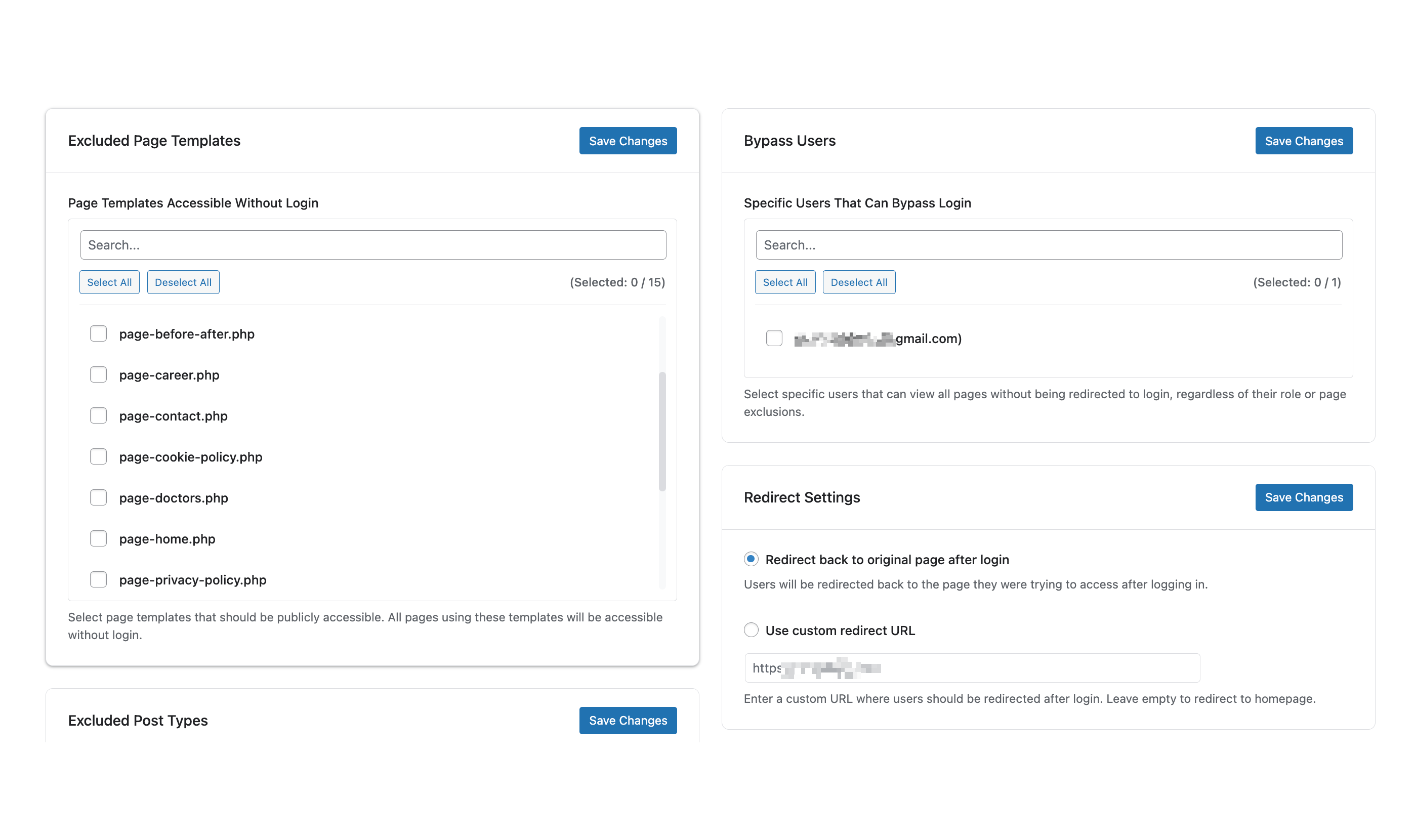 Select specific users that can bypass the login requirement. These users can view all pages without being redirected to login.