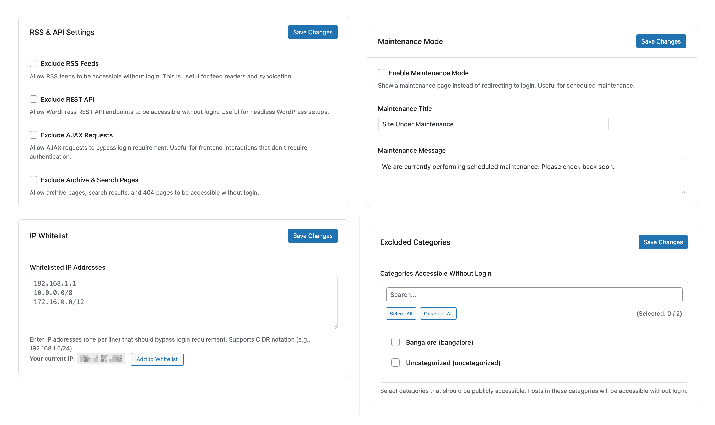 Select pages that should be accessible without login. These pages will be publicly accessible even when the plugin is active.