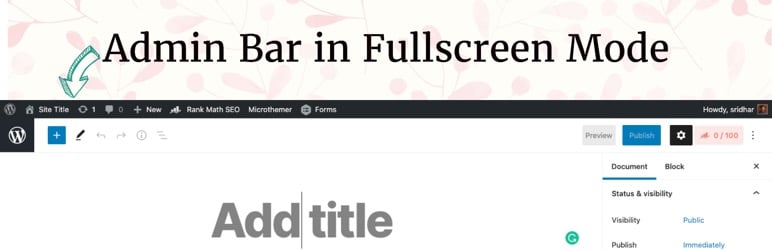 Search for admin bar fullscreen from within your WordPress plugins’ Add New page and install.