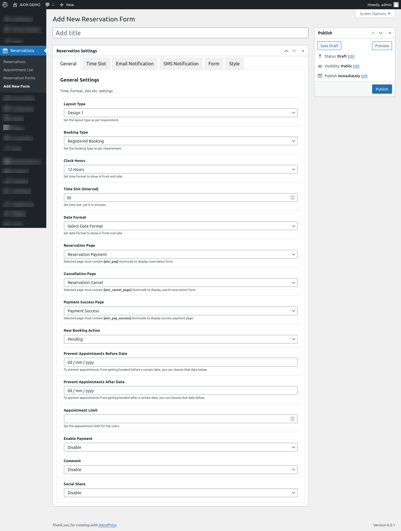 - Upload the all-in-one-reservation.zip file Via WordPress Admin > Plugins > Add New,
