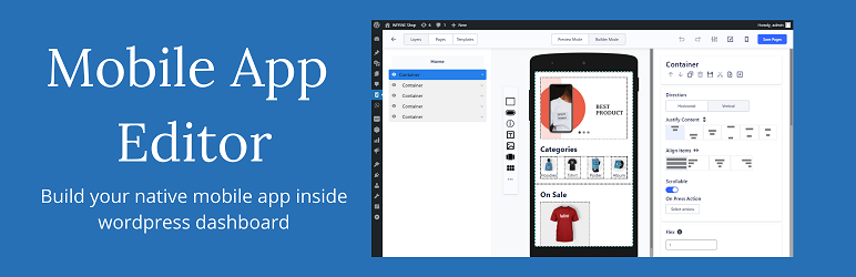 Native Android App Builder for wordpress and woocommerce. Build your native mobile app inside wordpress dashboard. No need to hire a mobile app developer. All the data from your wordpress website. Use custom post types and Advanced Custom Fields plugin if you need more than regular wordpress post data. The build process also runs from your wordpress dashboard and will generate apk and aab files to upload on the google play store. All of that is available for free.