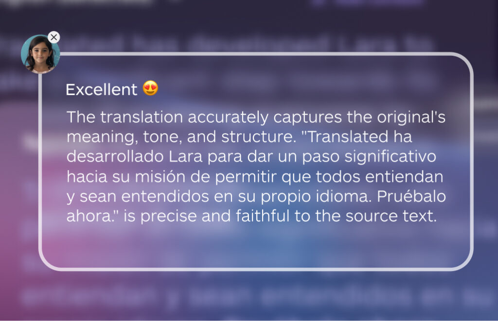Translated’s purpose-built AI model delivers predictable quality by working within full context and collaborating with language professionals where precision matters.