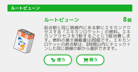 このルートビューンというアイテム、色々なイベントで貰える場合もあるし、課金して購入するわけですが、なかなか便利なアイテムです。これが、過去に取った駅を基点として同じ路線内であれば今いる駅まで一気にすべてアクセスできるというものです(20駅という制限あり、チェックインはできず、駅にアクセスしたという記録のみ)。