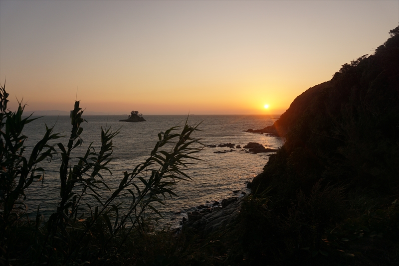 失意のまま更にフェリーに乗り、日間賀島からすぐの篠島に来て夕日を撮った。「日本の夕日百選」にも選ばれている由緒正しき夕日である。