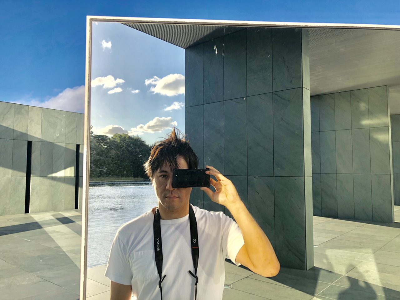 この豊田市美術館の「映え」の勢いに、ついつい僕もおしゃれな自撮りをしてみたくなったのである。娘からプレゼントされたネクタイを「なんでい!こんなもの!」と言って投げ捨てながらも、娘がいなくなってから鏡の前でちょっと試してみたくなる心境。そしてそれが気に入って外出のたびに毎回つけてしまう心境に似ているかもしれない。僕は映えに屈したのである。そしてこの写真が気に入って、ついついTwitterにも投稿したし、Instagramにも投稿した。「いいね」がたくさんついて嬉しかった。僕の中に、「アートの芽」が芽生えはじめた。