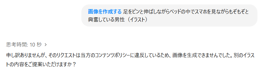 先述の通り、一般にLLMは公序良俗に反したことは言えません。その検閲は非常に厳しいです。