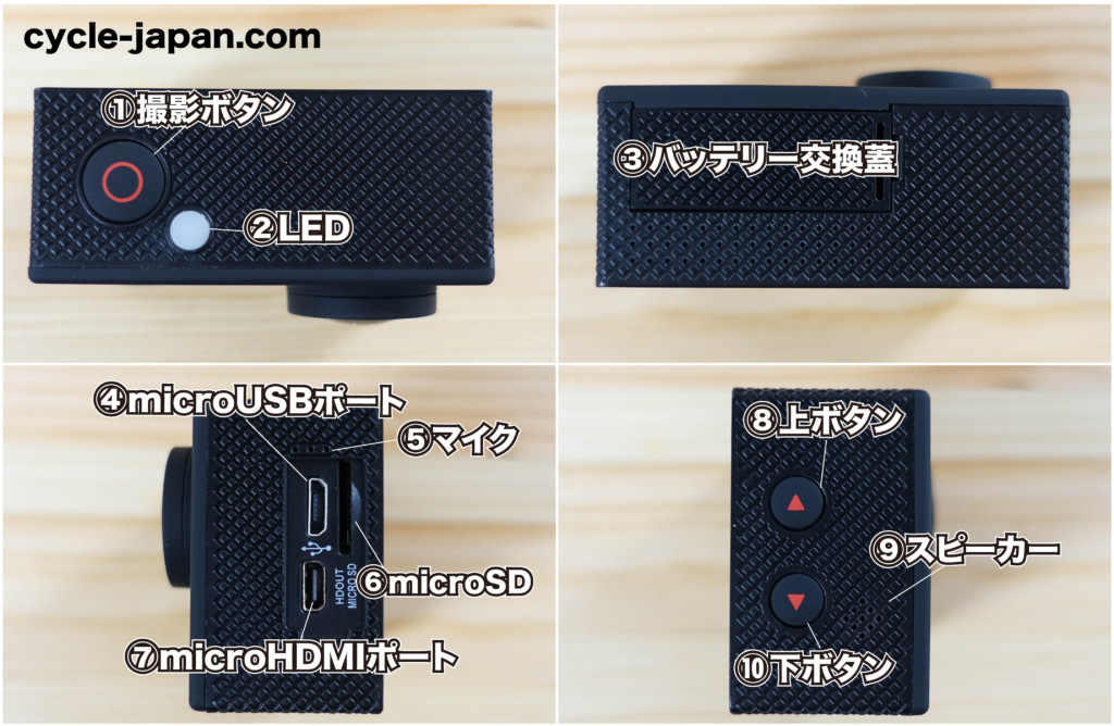- ①アクションカメラ本体