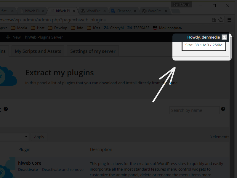 - Just activate the plugin. As a result, in the upper right corner there is the value of memory used in relation to dedicated hosting.