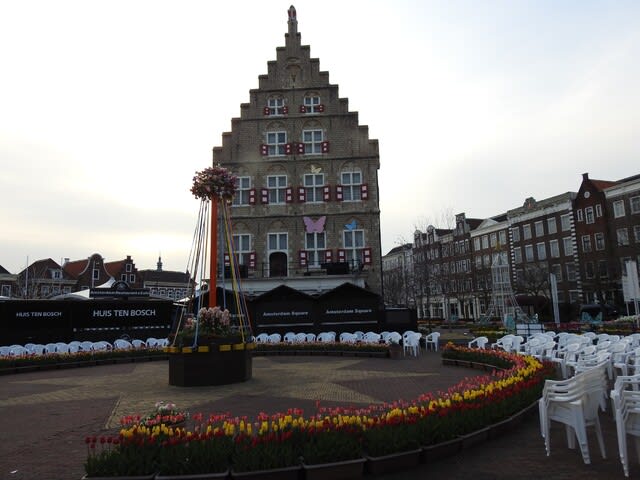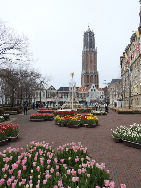 「ハウステンボス」の品種のチューリップがアムステルダム広場でもたくさん見掛けました。