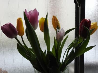我が家の台所や1階の仏壇の側ではチューリップがきれいに咲いています。