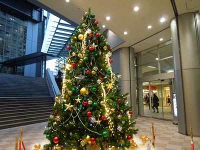 三ノ宮駅からJRで大阪駅に戻り、まだ、午後4時過ぎだったので、平日しか開いていない第3ビルと第1ビルの観光事務所に観光地のパンフレットをもらいに行きました。その道中で、地下街に飾ってあったクリスマスツリーを撮影しました。