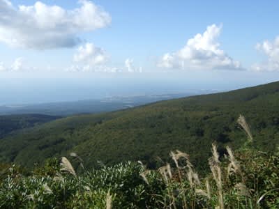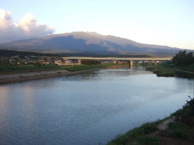 <正面に聳えるのは、鳥海山でしょうか!?>