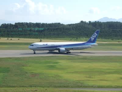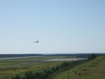 滝を後にして、新道へと合流したら月山ダムの脇を抜け、庄内あさひICから山形道で一気に庄内空港ICへ。ICの至近に本日の野営地「庄内夕日の丘キャンプ場」があります。受付を済ませたら、早速テントの設営です。ここは二輪専用サイトがあって愛車の乗り入れも可能ですが、サイトは芝の傾斜地のため、大排気量車や重量車はお勧めできません。そして、このキャンプ場を選択した一番の理由。それは、眼前で飛行機が離発着すること!この時も、テントを設営し終わって一息突いていると、一機の旅客機が動き出しました。