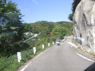 さて、肝心の七ツ滝ですが、場所が非常に分かりにくいです。現に、先行していたI氏はそのまま通過してしまいましたし、私もナビが無ければ気付かなかったでしょう。携帯電話でI氏へ連絡しようとしたら、I氏が戻ってきました。「いやー、またパンクしたのかと思いましたよ」とI氏。縁起でもない!(笑)