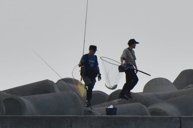 自分はカメラのテストで色々と映していると外堤防の先端でロッドを大きく曲げている人が目に入りました。