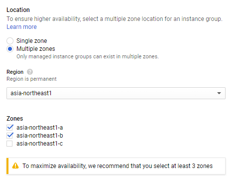 asia-northeast1-a,asia-northeast1-b, andasia-northeast1-c. Balance the load across all zones using an Internal Load Balancer (ILB). - Create an instance template and deploy a managed instance group in a single zone. Configure a health check to monitor the instances.