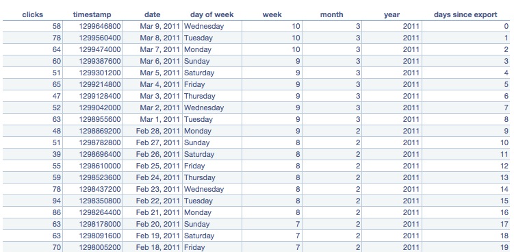 - A table of click data for the requested period