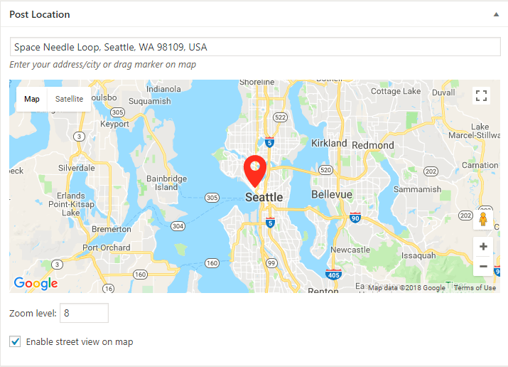 - Display post location pin above or below your post content