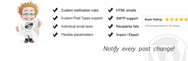 “Thank you for your great support – the plugin works great now and has accomplished what 5 other commercial and free plugins couldn’t – to provide simple and configurable email notifications for WP status changes.”