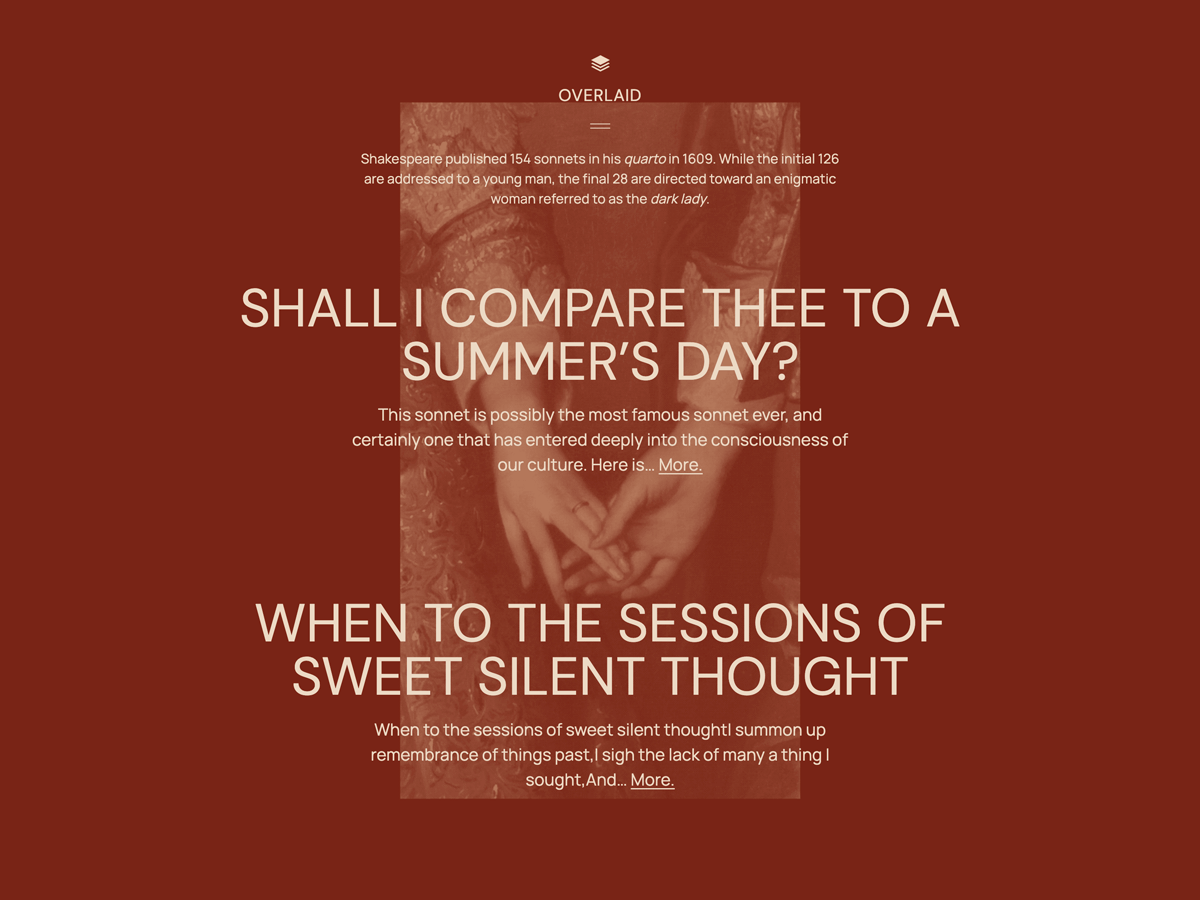 Layover displays large titles and excerpts that scroll over an image on the Homepage and neat single pages for users who want their blogging to be simple.