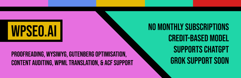 WPSEO.AI is a platform that connects your WordPress site, with Artificial Intelligence (AI). Allowing SEO optimizations, such as proofreading, WYSIWYG, Gutenberg block layout improvements, and support for translating your content into different languages, integrating with the SitePress WPML plugin. Users can purchase credits to use our service, which integrates AI through this WordPress plugin, for the Gutenberg editor. = Features = Content proofreading Spelling, punctuation, and grammar facilities. Markup and Gutenberg block optimisations Provide improvements to your content, and Gutenberg block layouts. Multilingual translation Integration with WordPress Multilingual (WPML) plugin. Advanced Custom Fields (ACF) Support extra, custom defined metadata. Summarisations Provide context on what has been changed, and why. Version control Supports the WordPress revisioning system, creates a new draft, for each optimisation. = Links = * Website * Buy credits * FAQ * Terms of Service * Privacy policy
