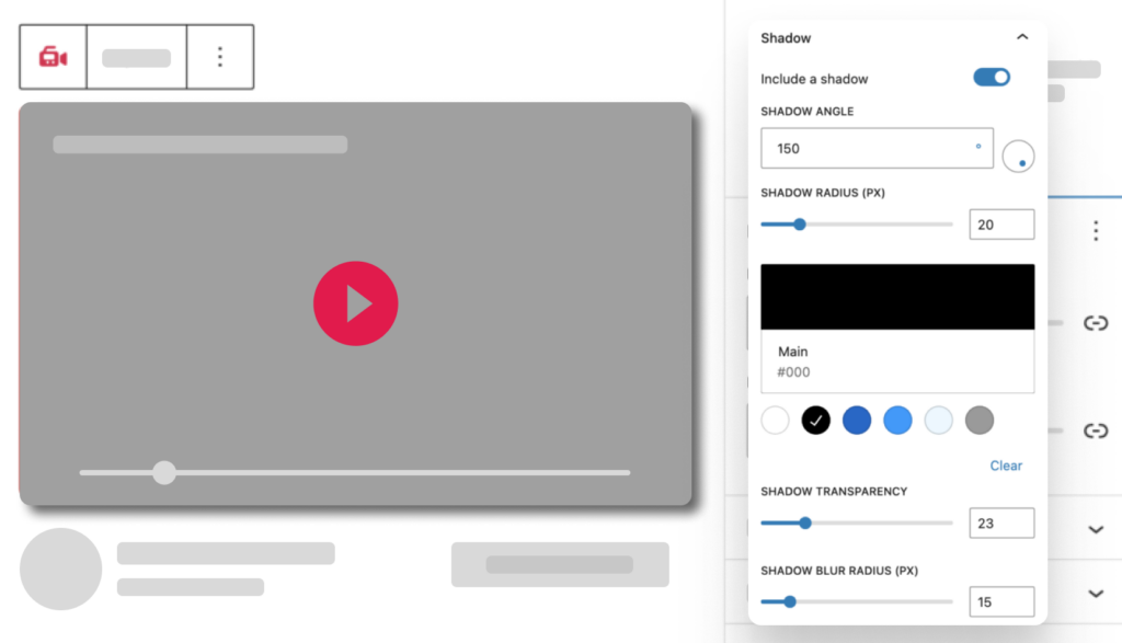 Add depth and prominence to your video with shadow effects, making it stand out on the page.