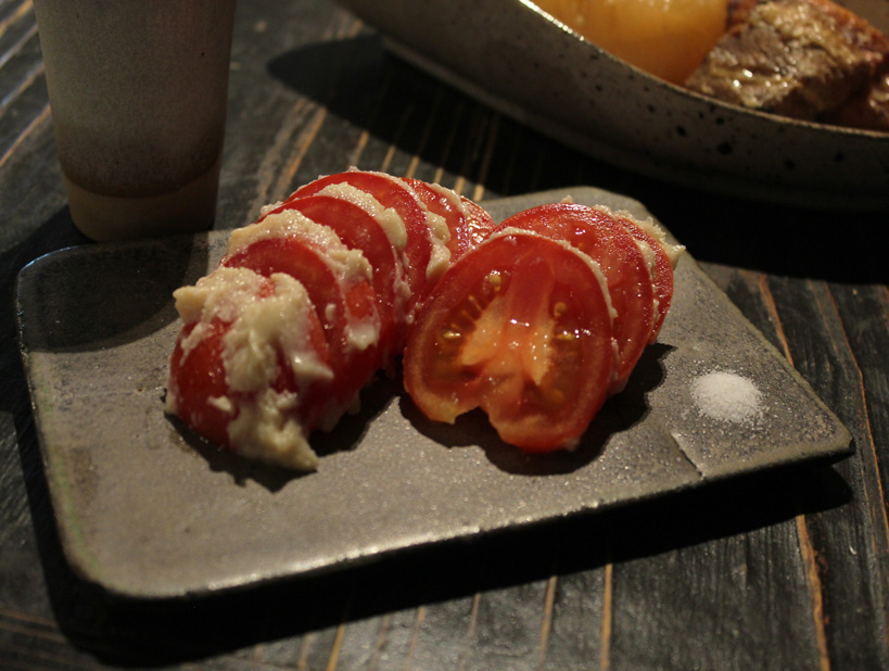 豆腐の味噌漬け、帆立の酒盗漬けには純米酒。