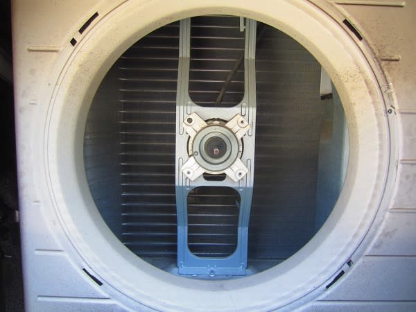 風量的には吸出しから吸込みに変えてもファン形状が同じなので、ほとんど変わらないはずだが、室外機のファンネル(吸込み口)により僅かに効率が落ちるかも知れない。