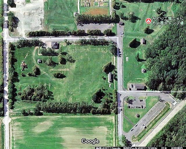 右側が北方向。右下が道路側の駐車場で、上部中央が僕が停めている駐車場だ。