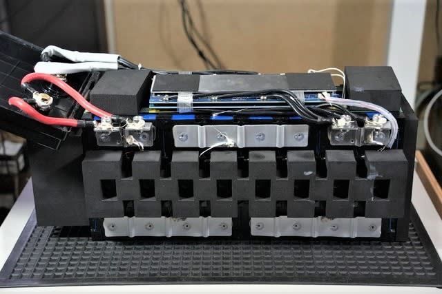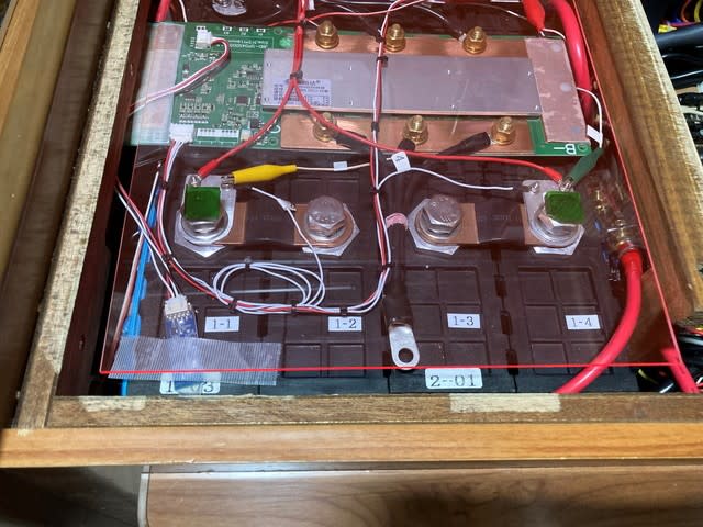 セルは横向きで置かれていて100Ah×2を並列にして1Sとし、それを直列に4Sとしている。
