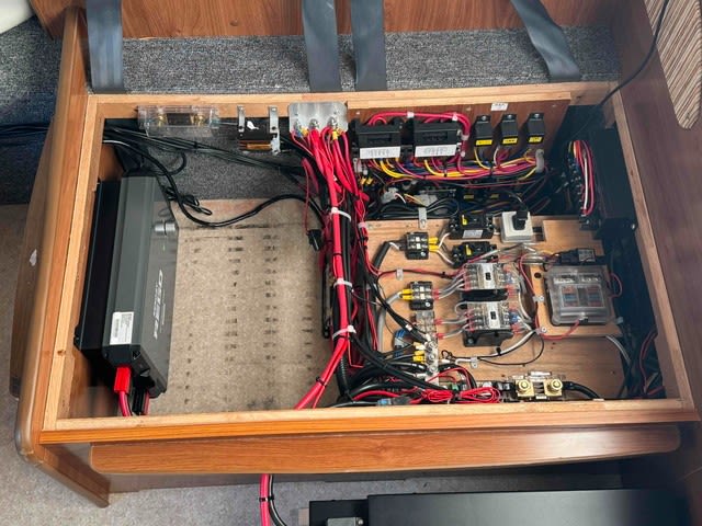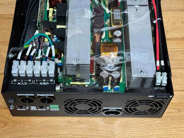 バッテリーが無くなってインバーターが停止したら、マグネットスイッチが外れて外部AC電源から流れる。