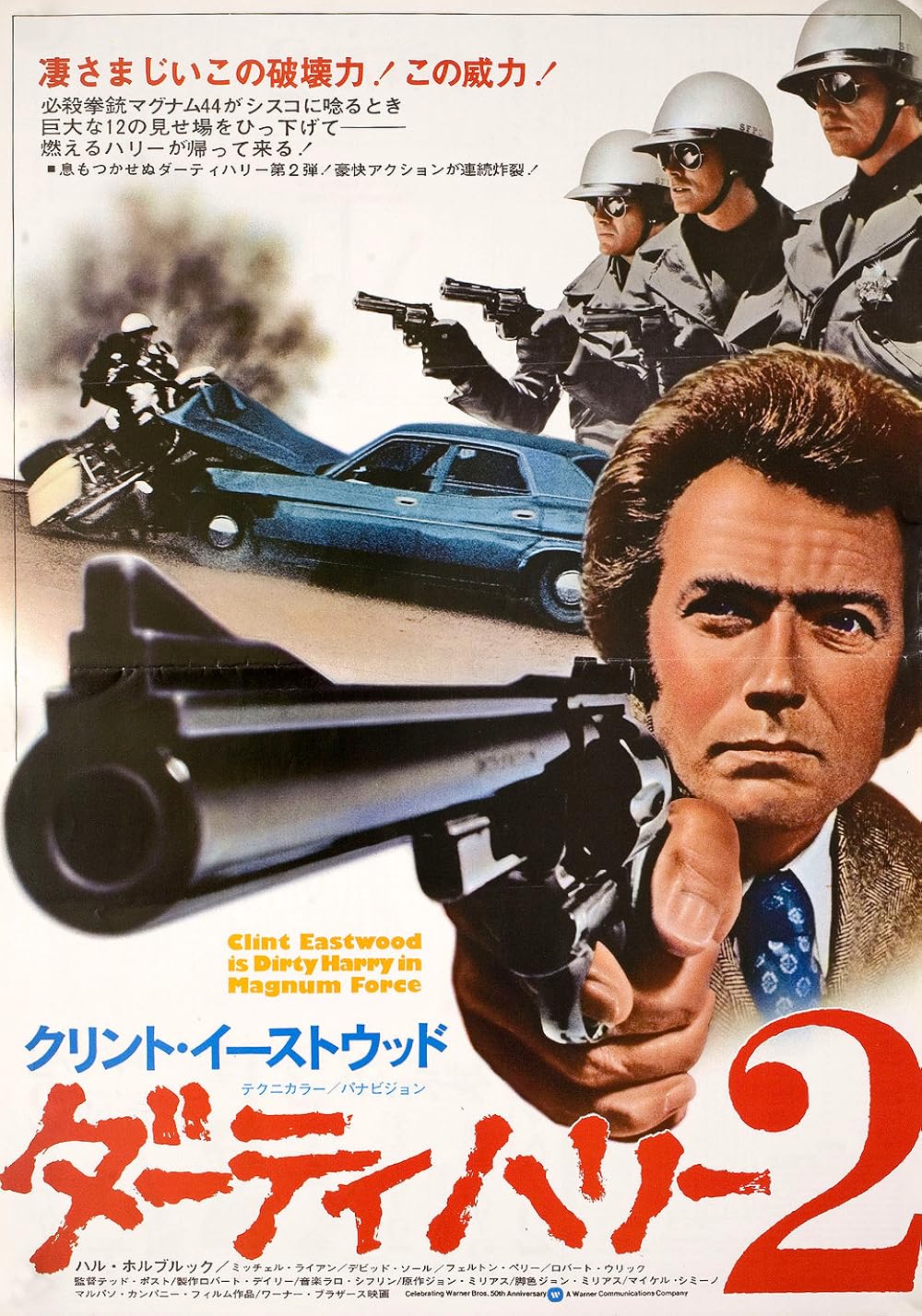 『ダーティハリー』(原題『Dirty Harry』)が高評価だったためシリーズ化されました。『ダーティハリー2』(原題『Magnum Force』)は、1973年製作のアメリカ映画。前作を超えるヒットを記録。監督のテッド・ポストは1968年のイーストウッドの主演作『奴らを高く吊るせ!』の監督も務めている。『奴らを高く吊るせ!』のモチーフを保ちつつ西部劇から現代劇へ時と場所を変えたリメイク作品と言ってもいい。