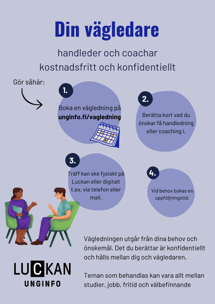 Informations-, rådgivnings- och vägledningstjänster för unga och unga vuxna på svenska.