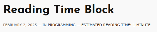 This is ideal for blogs, documentation, or any content where you want to set expectations about how long it will take a visitor to read the page.