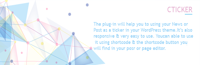 CTicker will help you to using your News or Post as a ticker in your WordPress theme. You can embed news or post using the CTicker shortcode in everywhere you want, even in theme files.