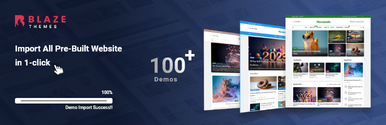 Blaze Demo Importer can be used in all the official themes developed by BlazeThemes. Plugin can be used to import any of the available starter sites settings in your website. Within just a few steps your website will look exactly like the starter website. Provides information about the plugin required to be installed and activated and proceeds automatically.