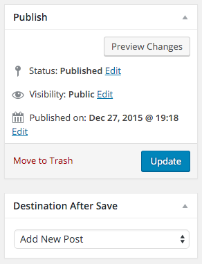 /destination-after-save/folder to the/wp-content/plugins/directory. - Activate the plugin through the ‘Plugins’ menu in WordPress.